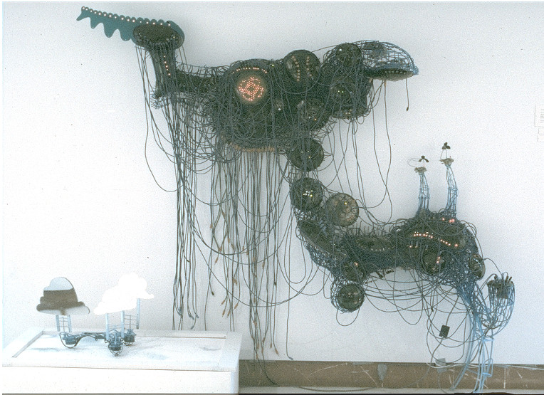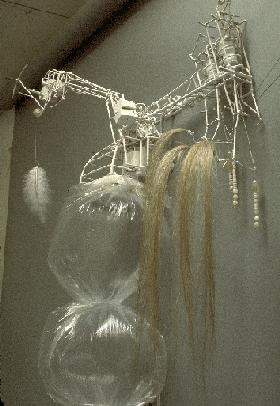 inflates, twitches horse hair whisks, jiggles beads and drops a