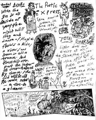 I spent a week in San Francisco. My first night there I slept in an old abandoned house (creepy). Another night I stayed in what seemed to be a real “hobo jungle.” I’d usually find a wooded or wild area and hide in it. Once I awoke to see an older man doing his exercises (Tai Chi I thought/ like a slow motion dance). In Golden Gate Park, I went into the ocean. It was cold and I could see sea lions away off. I got by Coit Tower, Union Square, Chinatown and so on. I spent a lot of time at City Lights Bookstore. On August 1, I met Jack Kerouac’s first wife Edie Parker. I got to know her better, later back in Detroit. The next day I caught up with the San Francisco Surrealists (found through City Lights). The late Surrealist poet Philip Lamantia (in particular) was one of the greats (to me). We had a long talk. They gave me a big box of books to hitch hike home with. Then too, I got to sleep indoors, in a house again. It was electrifying, inspiring and encouraging. These talks underlined and highlighted a lot of things for me (as well as tossing in a bucket of exclamation points). This journey changed my life in unexpected ways. It set me off onto certain paths from which I’ve never strayed. I’m as set on them now as I was then. The next day I got by City Lights one more time. That night I started heading out of town. I ended up sleeping in a kid’s toy fort or castle in a playground. I think some children arrived to play as I was awaking. I ended up back in Berkeley and walking from there to Oakland. |