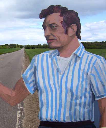 Detail of the painted wood lifesize cutout of the Silicon Valley Pioneer.