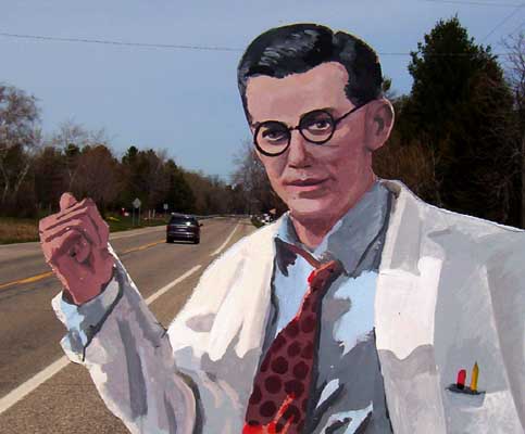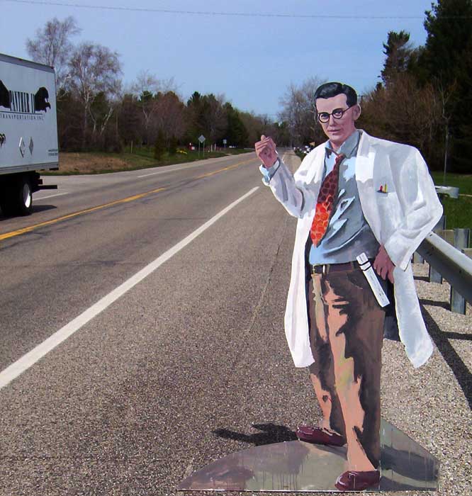 Detail of the painted wood lifesize cutout of the "father of Silicon Valley" Email jim (at) jpallas.com for high resolution images. |