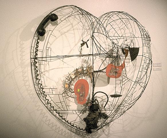 The red LEDs of this kinetic heart are unrelated to the yellow digital