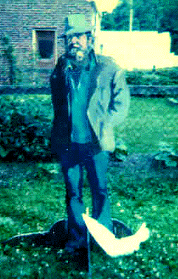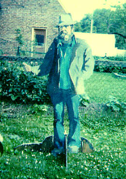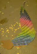 | Well, until then I hadn't wanted to, but, there was something about his pose and jacket that looked like it would be interesting to make a detachable arm. And besides, it was his suggestion. So, after checking that he wouldn't mind, I cut the arm out separately and bolted it on. | While I was at it I cut a few extra arms and covered one with spectrum-producing diffraction grating paper. I was struck by the boomerang-like shape of the isolated hitchiking arm. |