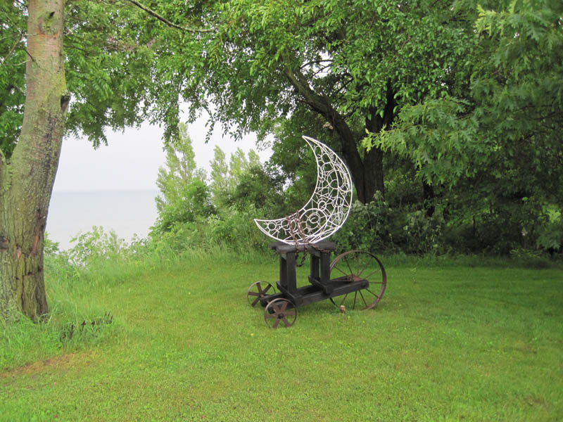 Painted welded steel rebar, steel wheels, chain, tarred wood