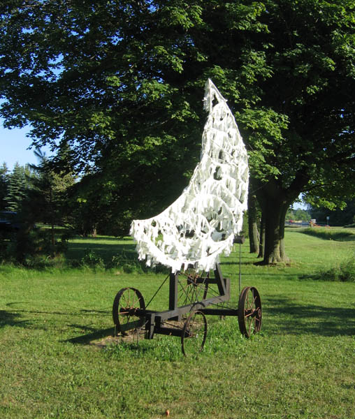 Steel, fraying fiber glass cloth (not resined), tarred wood, rubber.
