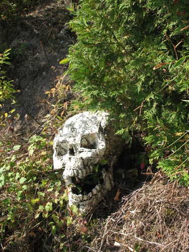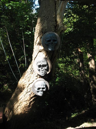 | Death (1999 21x23x33 pigmented epoxy fiberglass on aluminum foil over a welded steel frame. Originally conceived as grouped with Red Demon and Earth Goddess to be a donation "box" for Michigan Legacy Art Park |