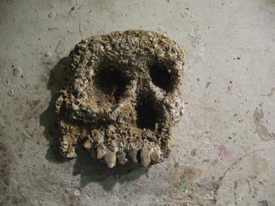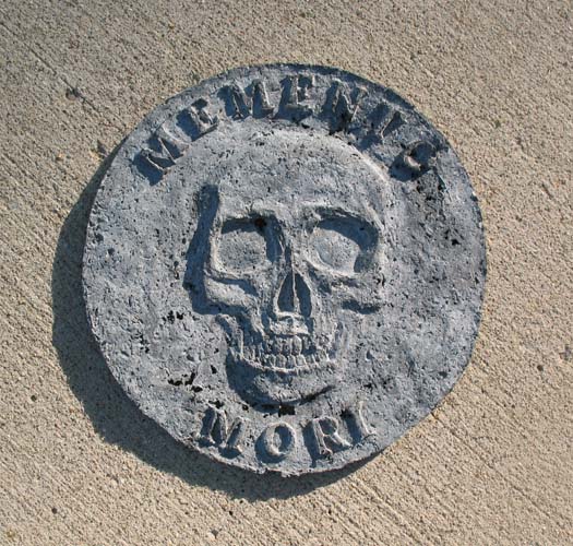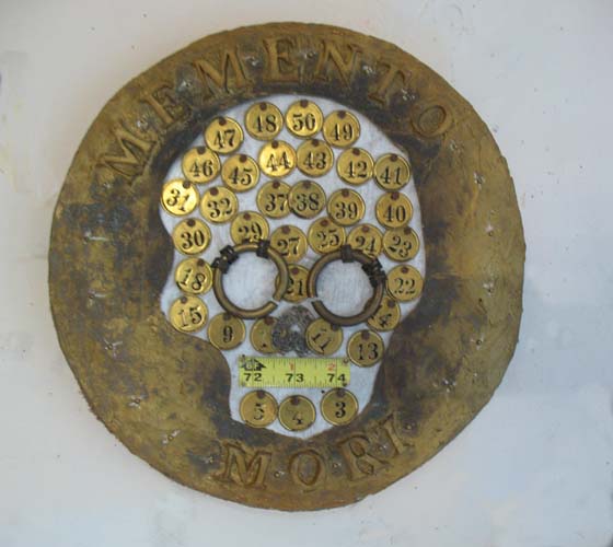 Memento Mori #s 1, 2, 3. (2008) dripped lead on concrete plaque 11" dia. x 4" |